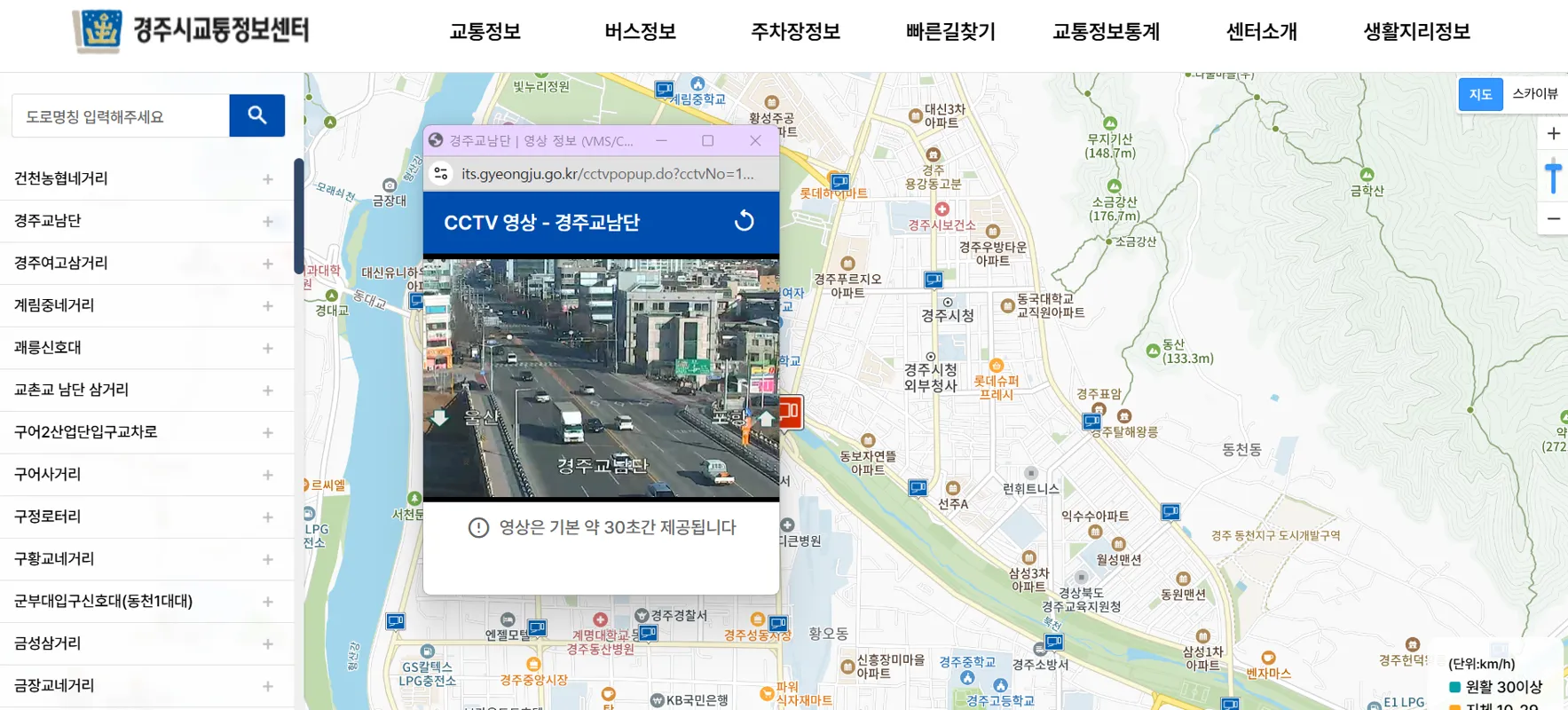 - 특징: 경북 주요 도로와 교차로의 실시간 상황을 확인할 수 있는 서비스.