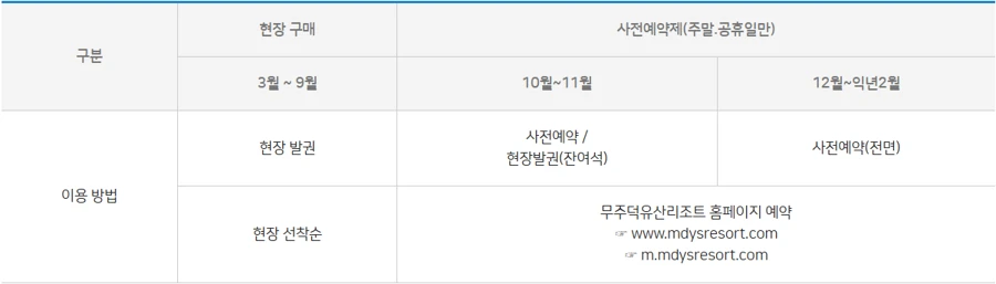 덕유산 케이블카는 무주리조트에서 운영하며, 사전 예약제를 통해 이용할 수 있습니다. 아래는 예약 방법과 관련 정보를 정리한 내용입니다.