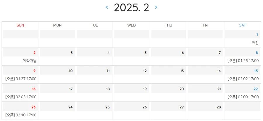 - 사전 예약: 특히 주말에는 예약이 빠르게 마감되니 서둘러 예약하세요.