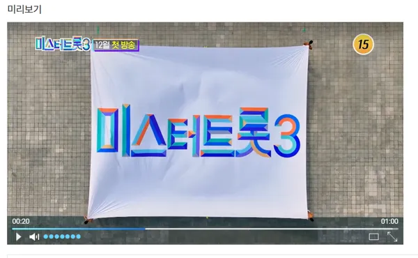 📢 미스터트롯3가 12월 19일 첫 방송을 시작했습니다. 본방송을 놓치신 분들은 시즌3의 첫 회차부터 다시보기가 가능하니, 미스터트롯3의 즐거움을 놓치지 마시기 바랍니다.