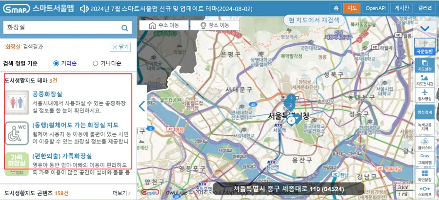 서울시 공중화장실 위치 확인을 위한 온라인 지도 활용