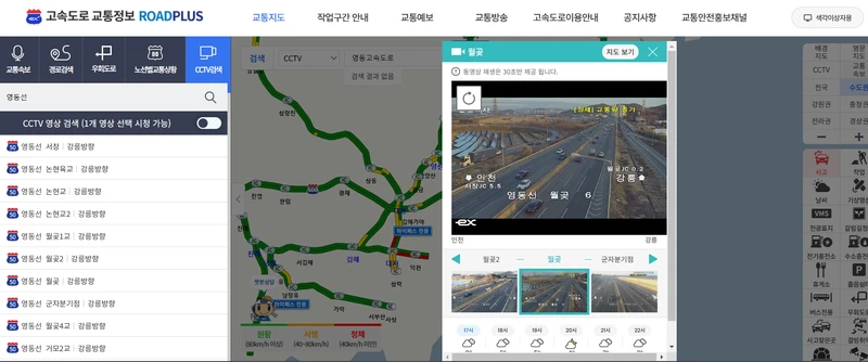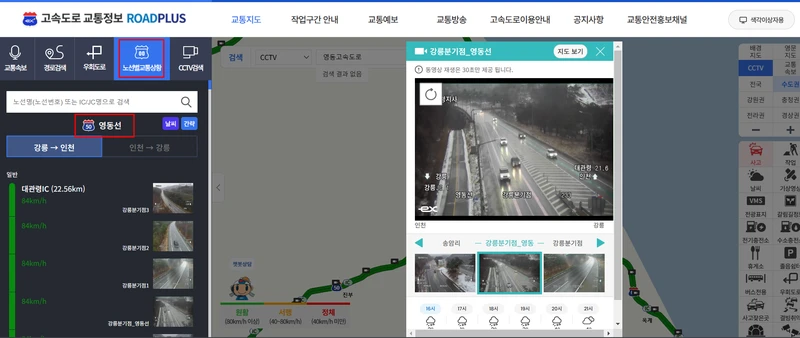 영동고속도로의 실시간 교통상황과 CCTV는 한국도로공사에서 운영하는 로드플러스(ROADPLUS) 사이트를 통해 쉽게 확인할 수 있습니다.