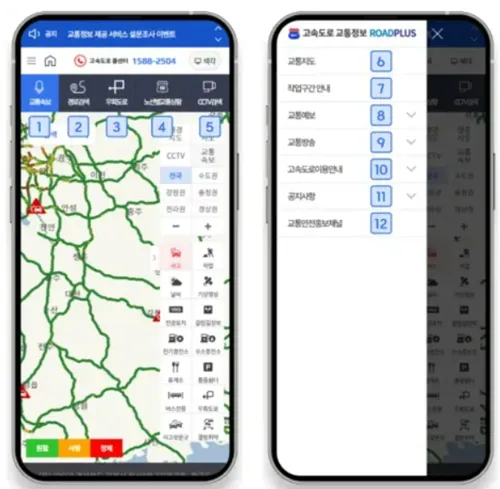 - 신갈분기점, 호법분기점, 둔내터널, 대관령휴게소 등 주요 지점의 실시간 CCTV 영상 제공